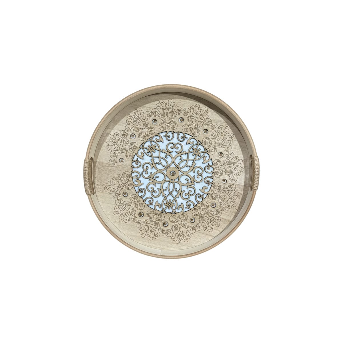 Cet ensemble comprend deux plateaux de service ronds de tailles différentes, parfaits pour présenter vos mets ou décorer votre intérieur. Fabriqués en bois clair de qualité, ils arborent un design central ajouré inspiré des mandalas ou motifs orientaux, ajoutant une touche d’élégance et d’exotisme. Les bords sont rehaussés de poignées en corde de jute tressée, offrant une prise en main confortable et un charme rustique chic. Idéaux pour le salon, la salle à manger ou même comme pièce maîtresse sur une table basse, ces plateaux s’intègrent parfaitement dans les décors bohèmes, ethniques ou contemporains. Leur finition soignée et leurs détails gravés en font des objets à la fois pratiques et esthétiques.
