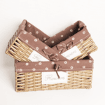 Chaque panier est doublé d’un tissu marron décoré de petites fleurs blanches, ce qui leur donne un charme unique. Les rubans en tissu ajoutent une finition soignée qui s’intègre parfaitement dans une décoration bohème, scandinave, vintage ou champêtre.