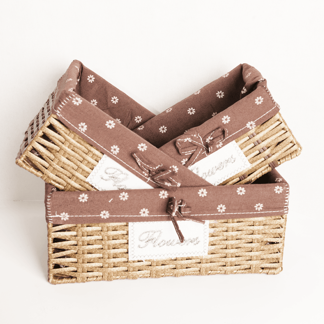 Lot de 3 paniers en osier avec doublure tissu fleuri – Rangement pratique et déco maison