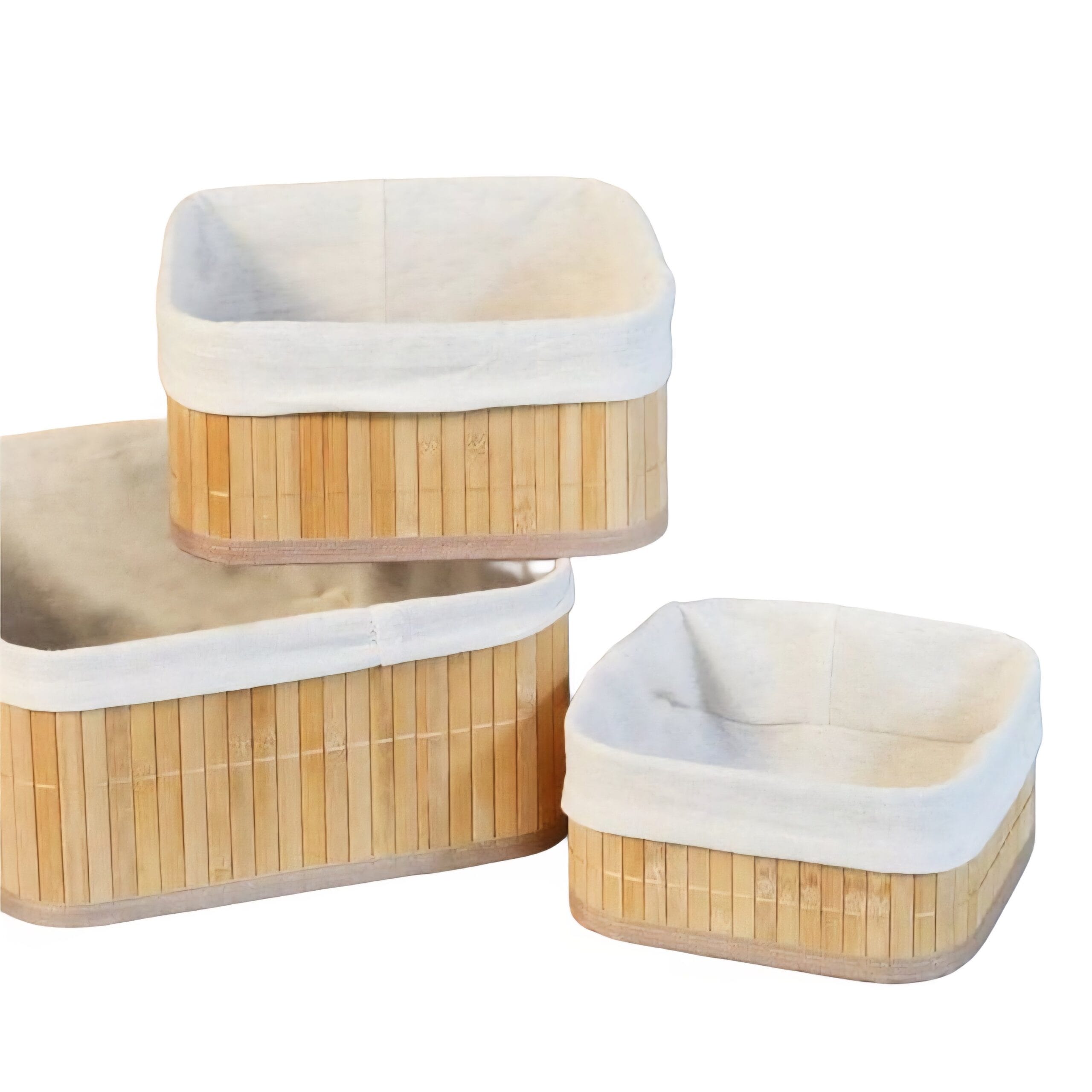 Apportez organisation et style à votre intérieur avec ce lot de paniers rectangulaires en bambou avec doublure en tissu.