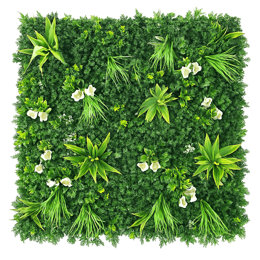 Le mur Émeraude Florale se distingue par la pureté de ses fleurs blanches contrastant avec des feuillages verts lumineux. Ce modèle apporte fraîcheur et élégance, parfait pour un salon, un espace de réception ou une terrasse. Résistant et sans entretien, il conserve son aspect soigné toute l’année.