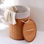 Le couvercle en bambou garde vos vêtements à l’abri des regards et limite les mauvaises odeurs. La doublure intérieure en tissu beige est amovible et lavable, pour un entretien facile et hygiénique. Les poignées en corde robustes permettent un transport pratique.