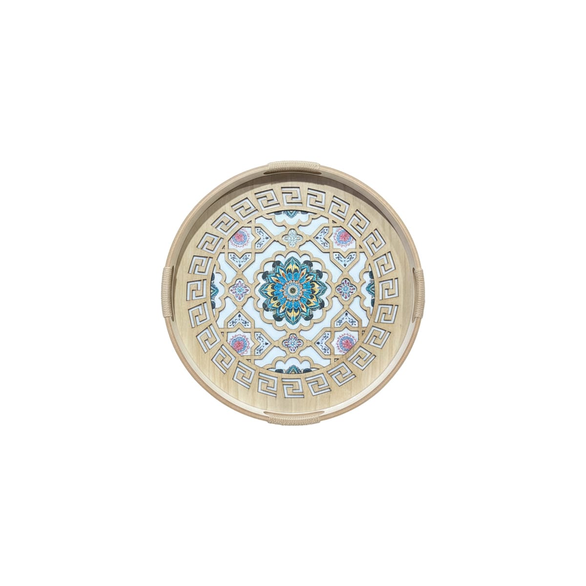 Découvrez nos élégants plateaux de service ronds, confectionnés en bois clair de qualité et sublimés par des motifs mosaïque d’inspiration orientale. Chaque plateau présente une surface décorée, probablement protégée par une couche de résine pour une durabilité accrue et une brillance éclatante. Parfaits pour apporter une touche d’exotisme et de raffinement à votre intérieur, ils sont dotés de poignées intégrées pour un transport facile. Idéaux pour le salon, la salle à manger ou même comme pièce décorative sur une table basse, ces plateaux s’intègrent harmonieusement dans les décors bohèmes, modernes ou traditionnels.