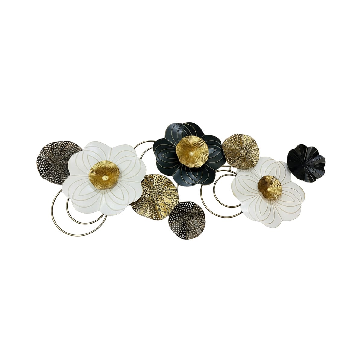 Cette magnifique décoration murale est une œuvre d’art contemporaine, conçue pour apporter une touche de sophistication et de nature stylisée à votre espace. Elle se compose de plusieurs éléments floraux et de feuilles en métal, créant un effet de relief et de profondeur captivant. Les finitions dorées brillantes contrastent harmonieusement avec les pétales blancs immaculés, les accents vert foncé et les touches noires, offrant une palette de couleurs riche et moderne. Idéale pour le salon, la chambre à coucher, le couloir ou même un bureau, cette pièce maîtresse s’intègre parfaitement dans les intérieurs contemporains, scandinaves ou éclectiques. Facile à installer, elle transforme instantanément n’importe quel mur en un point focal élégant et artistique.
